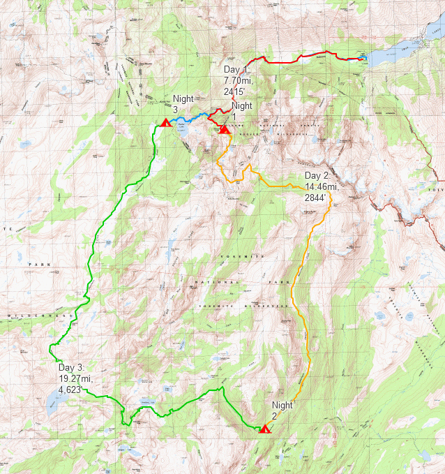 Our totals for the trip were 49.93 miles, 10,325 feet of elevation gain, 3 wet sleeping bags, and a deep sense of appreciation for the sun. This route was a sampler pack of what the Sierra has to offer: hiking below lofty granite peaks on a boulder field, low valley filled with desert shrubs, giant sandy meadows, huge trees on the banks of rocky rivers, and I would highly recommend it to anyone looking for a long weekend backpacking trip. Next up, climbing Matterhorn Peak!