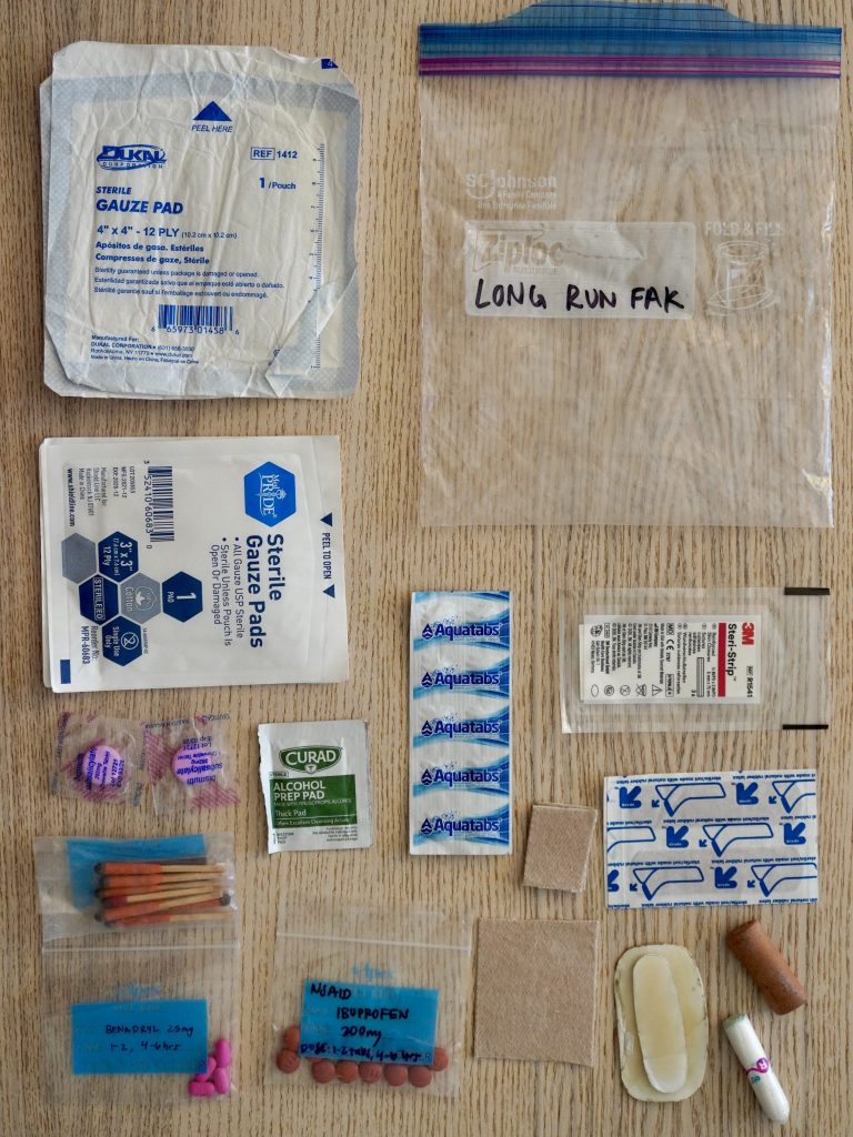 I’m a big believer that first aid kits (FAKs) are not once size fits all. I won’t be carrying my expedition FAK on a long run, and my long run FAK is not nearly adequate for an expedition.
